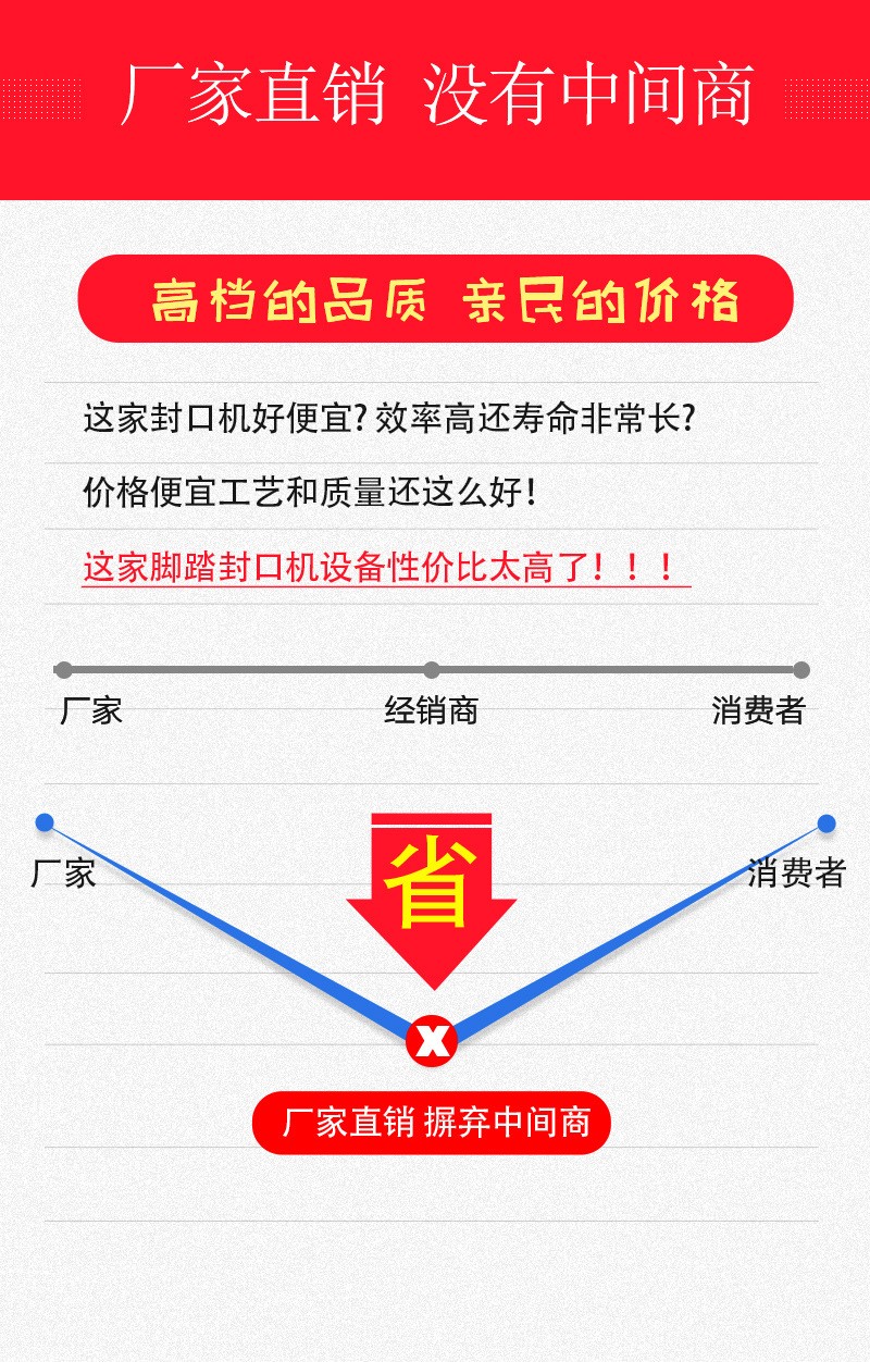 - 封口質(zhì)量穩(wěn)定性稍差:封口質(zhì)量可能會(huì)受到操作人員的力量大小、踩踏節(jié)奏等因素的影響。如果用力不均勻或者腳踏板踩下的時(shí)間不合適,可能會(huì)導(dǎo)致封口不牢固或者封口處外觀不平整。