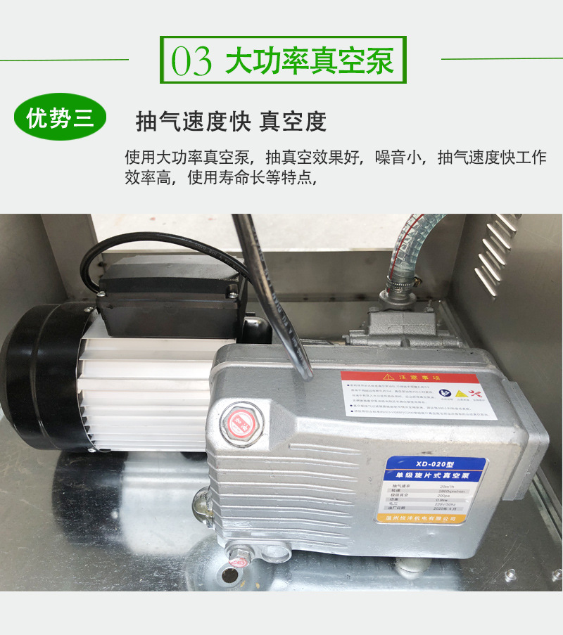 - 真空泵:作為關(guān)鍵動(dòng)力部件,負(fù)責(zé)抽出空氣,常見(jiàn)類型有旋片真空泵、油封真空泵等。真空泵的功率直接影響抽氣速度與所能達(dá)到的真空度,功率越大,抽氣越快、真空效果越好,但能耗也相應(yīng)更高。
