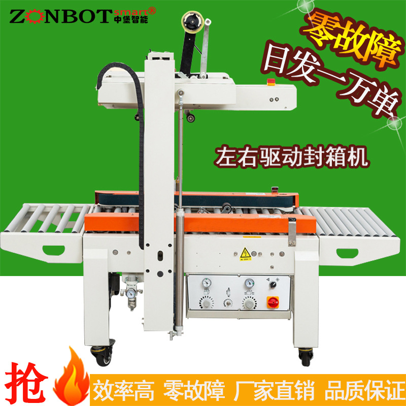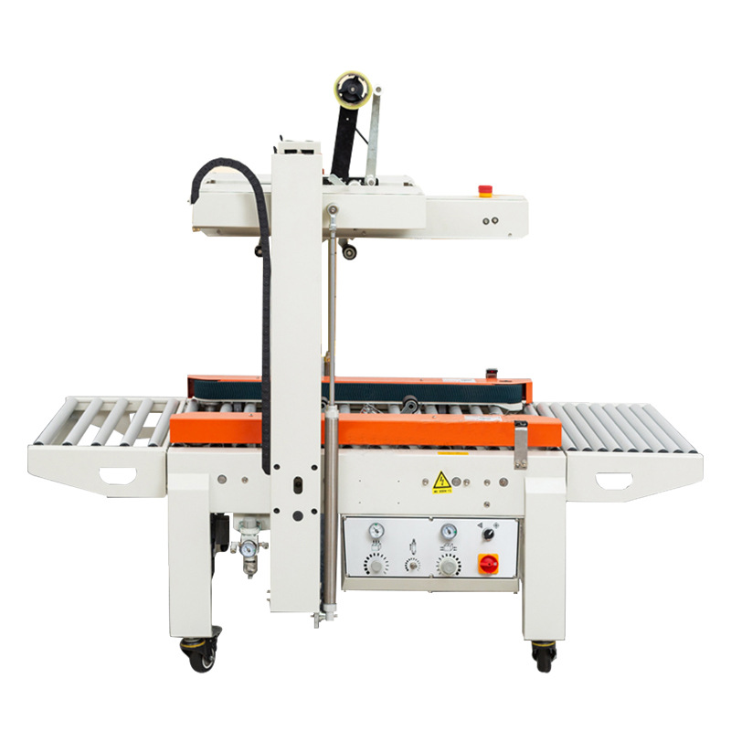 - 啟動封箱機:開啟封箱機的電源開關,啟動輸送帶和封箱裝置。輸送帶會帶動紙箱向前移動,當紙箱到達封箱位置時,封箱機的膠帶分配器會自動將膠帶粘貼在紙箱的封口處,并通過壓合裝置將膠帶壓合牢固,完成封箱操作。
