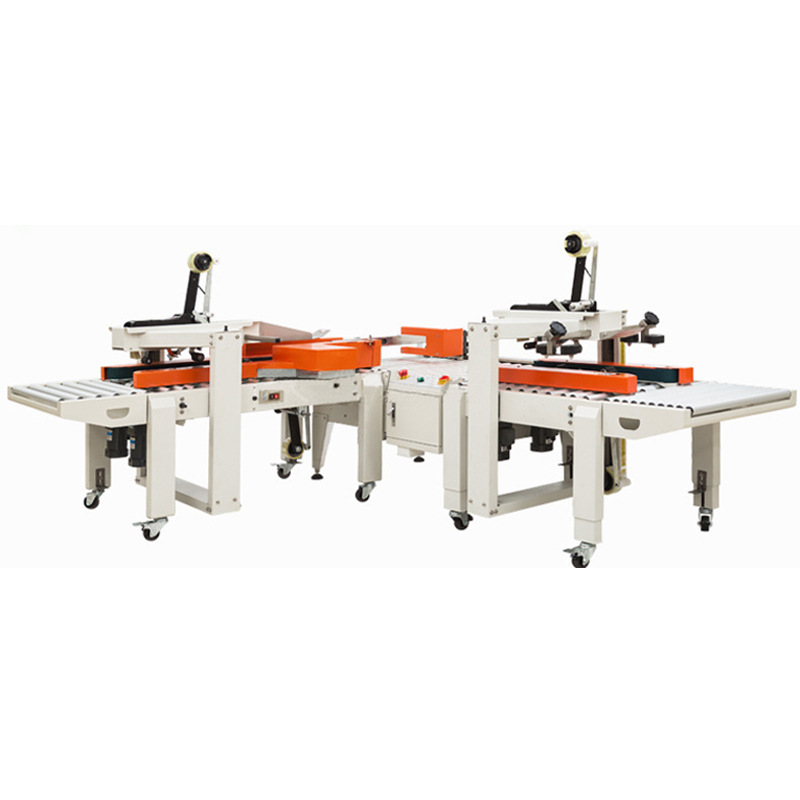 - 側(cè)面封箱:完成頂部封箱后,紙箱繼續(xù)隨輸送帶前進(jìn)至側(cè)面封箱工位。側(cè)面封箱的原理與頂部封箱類似,膠帶分配器將膠帶粘貼在紙箱的側(cè)面封口處,然后通過(guò)壓合裝置進(jìn)行壓合,使膠帶與紙箱側(cè)面緊密結(jié)合,最后由切割裝置切斷膠帶。由于側(cè)面封箱需要在紙箱的兩個(gè)側(cè)面進(jìn)行操作,因此通常會(huì)有兩組側(cè)面封箱裝置,分別位于紙箱的兩側(cè),同時(shí)對(duì)紙箱的兩個(gè)側(cè)面進(jìn)行封箱。