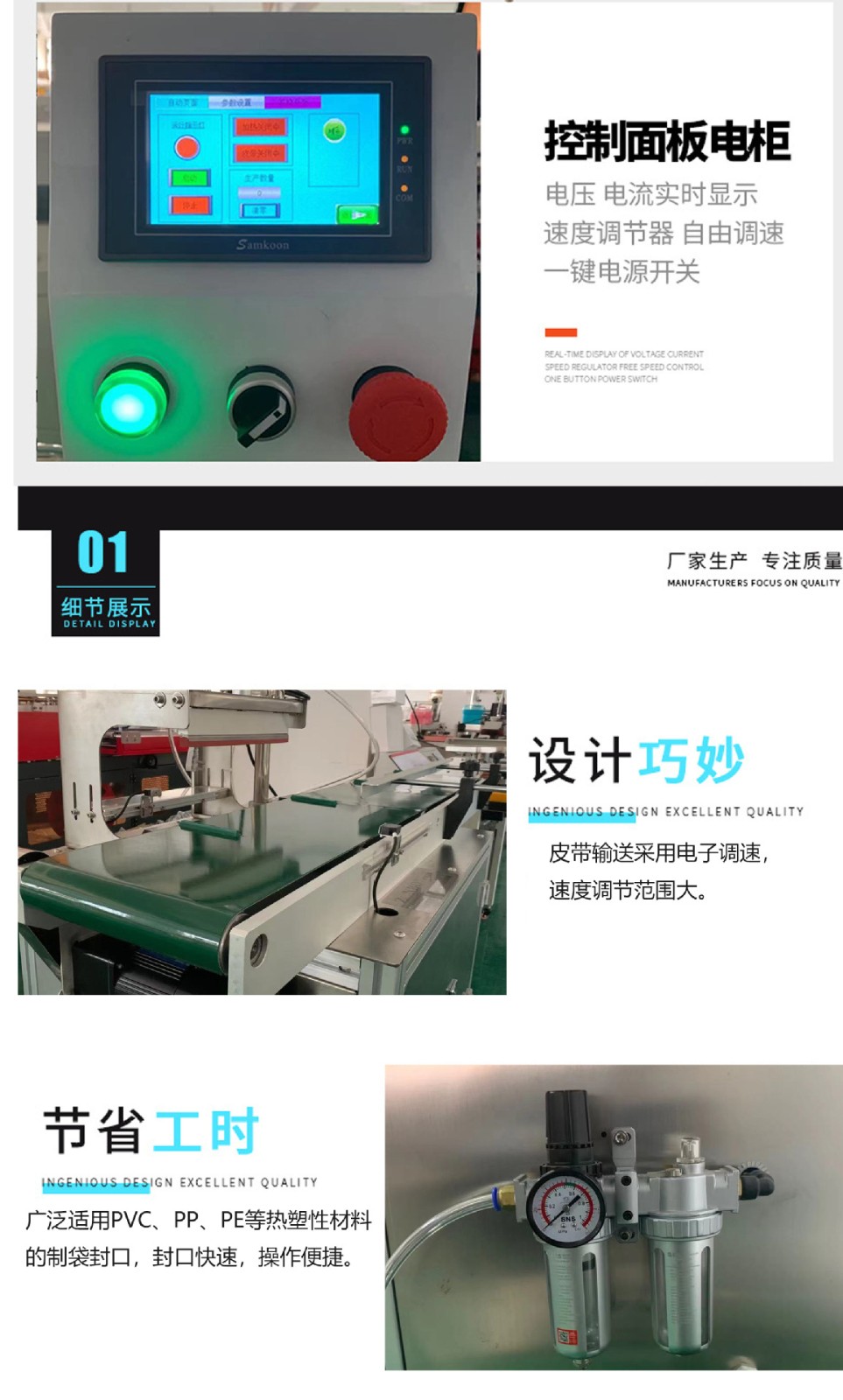 - 生產效率高:能連續不斷地對包裝進行封口作業,相比間歇式封口機,減少了停機和啟動的時間,大大提高了包裝速度,適合大規模生產。例如在食品、日化等行業的高速生產線中,每分鐘可完成數十個甚至上百個包裝的封口。