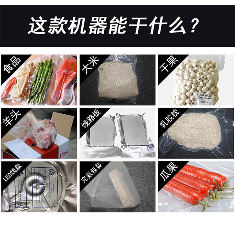• 內抽式真空包裝機:適用于各種形狀、尺寸和質地的產品,尤其是對包裝密封性要求較高、需要完全隔絕空氣的產品,如食品、電子元件、藥品等。