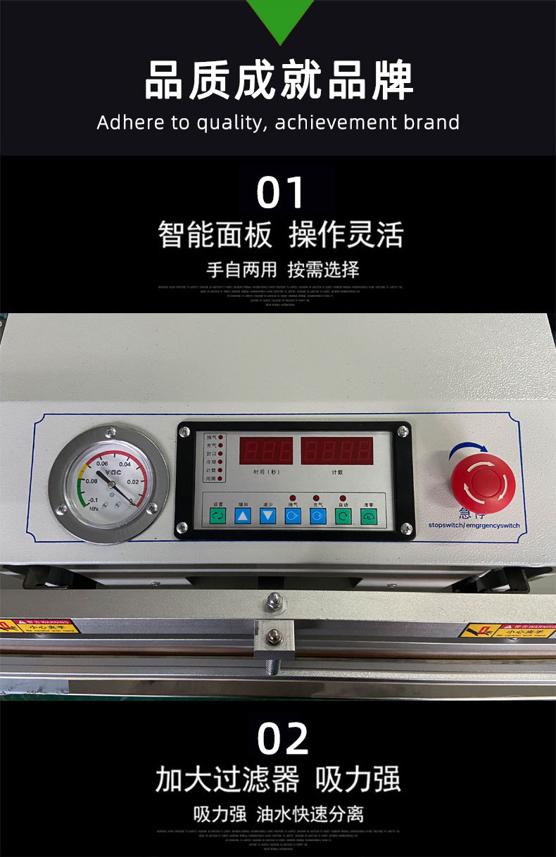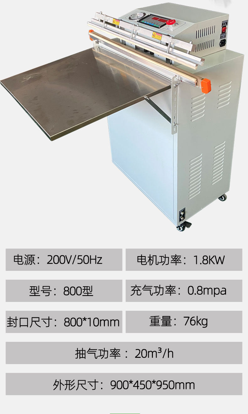 • 外抽式真空包裝機:適合包裝體積較大、形狀不規則或不易放入真空室的產品,如大型機械零件、羽絨制品、床上用品等。也適用于對包裝速度要求較高的場合。