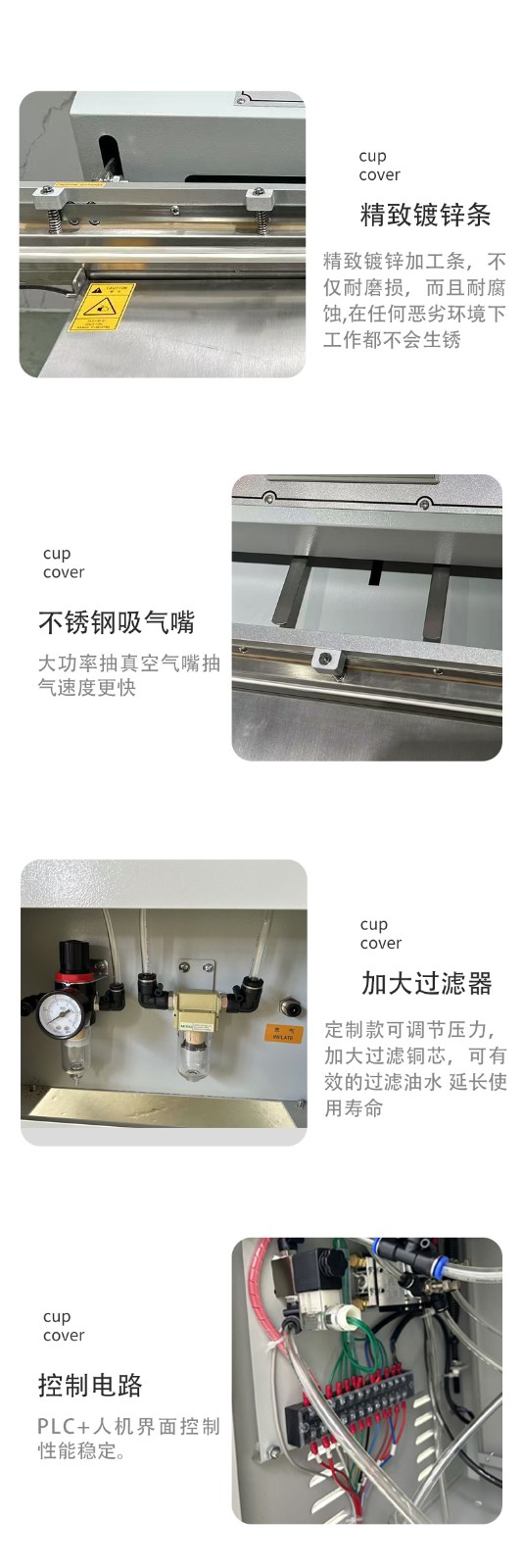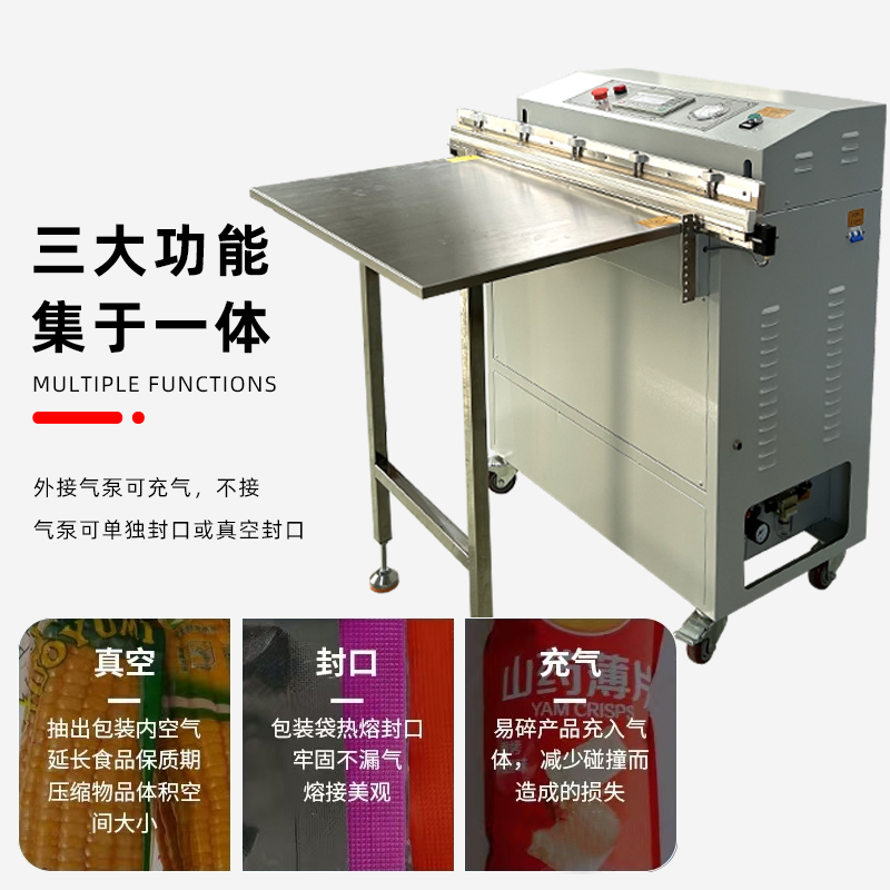 - 外抽式:一般采用立式結構,無密封真空室,由工作臺、抽氣裝置、封口裝置和控制系統等組成,結構較為簡單,占地面積小。
