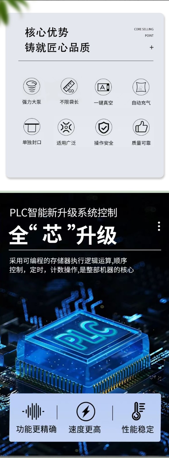 - 內抽式:真空室密封好,可達到較高真空度,能滿足對真空環境要求苛刻的產品包裝需求,如一些易氧化、需長期保存的食品和藥品。