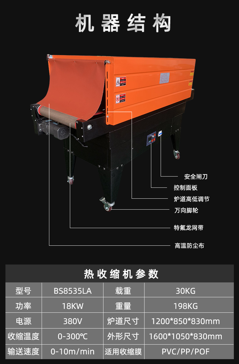 熱收縮機(jī)的技術(shù)參數(shù)因設(shè)備類型、用途和廠家而異,以下是一些常見的技術(shù)參數(shù):