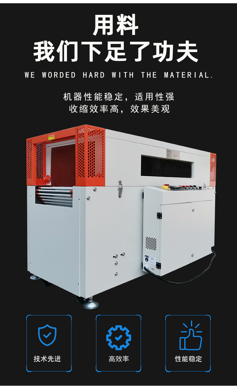 ZB-BSG5030SL熱收縮機是通過加熱裝置將熱收縮薄膜加熱至一定溫度,使其軟化并收縮,緊密地包裹在產品表面,從而實現對產品的包裝