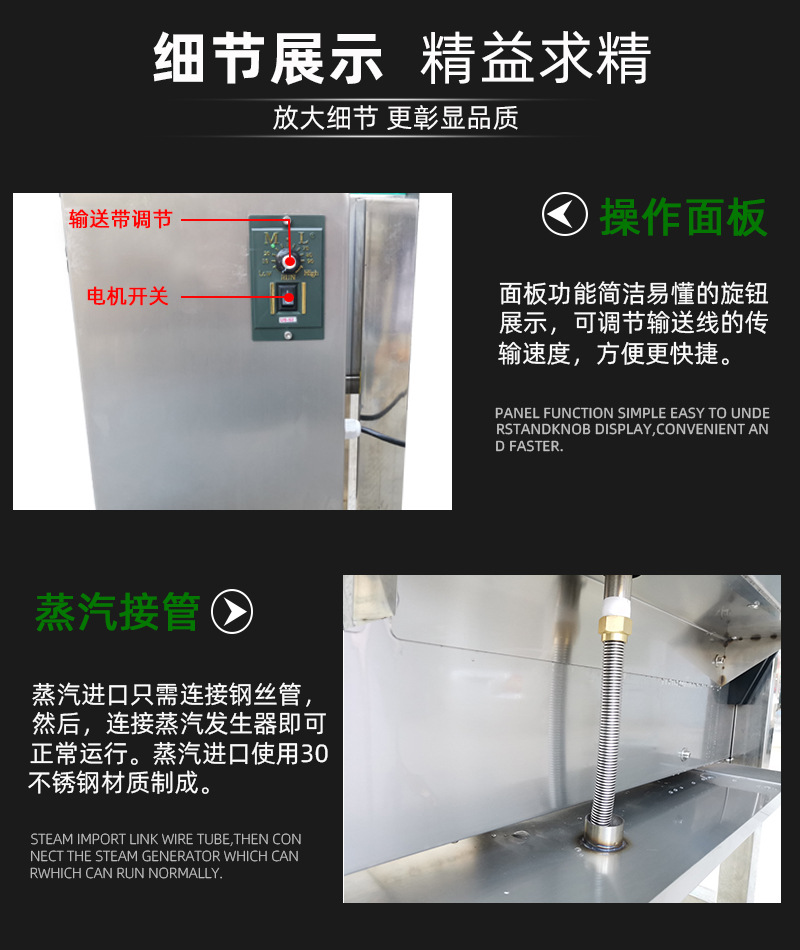 通常由蒸汽發生器、輸送系統、加熱室、控制系統等部分組成。蒸汽發生器產生高溫蒸汽,輸送系統將待收縮包裝的產品輸送至加熱室,在加熱室內,蒸汽均勻地作用于包裝薄膜,使其收縮貼合在產品表面??刂葡到y則負責調節蒸汽溫度、輸送速度等參數,以確保收縮效果的穩定性。