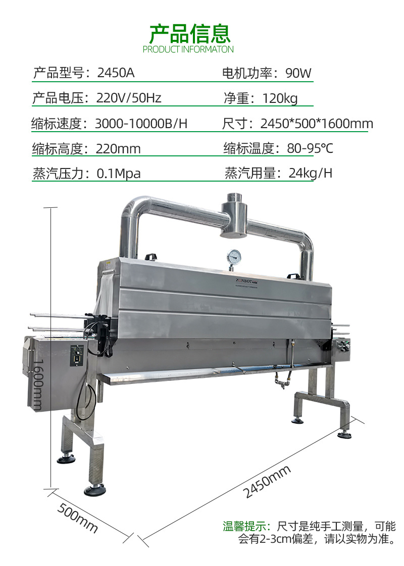 總之,蒸汽收縮機以其高效的收縮性能、廣泛的適用性和簡便的操作等特點,在包裝行業中發揮著重要的作用