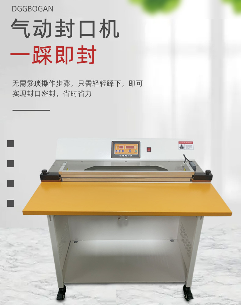 - 封口牢固:氣動封口機的壓力較大,能夠使包裝材料緊密粘合,封口牢固,不易開裂。