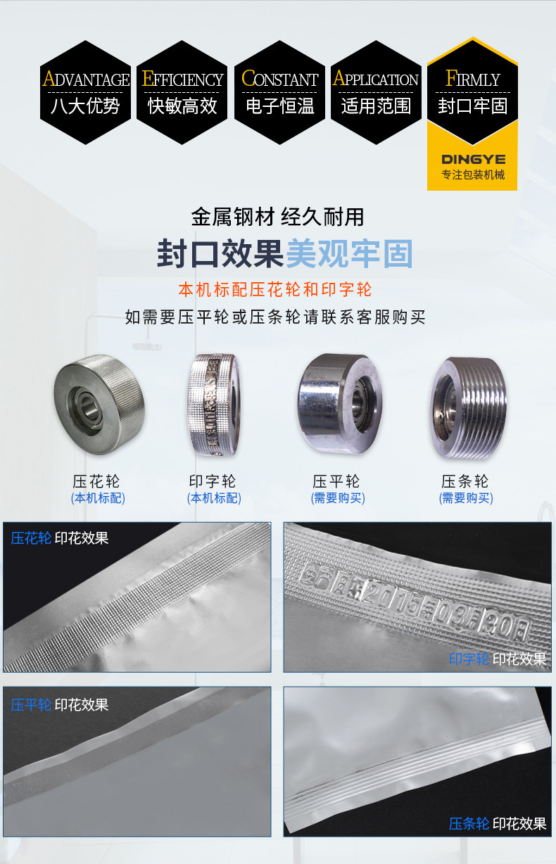 - 適用范圍廣:可以適用于各種不同材質(zhì)的包裝材料,如塑料薄膜、復(fù)合薄膜、鋁箔等。同時(shí),也能適應(yīng)不同形狀和尺寸的物品封口需求。