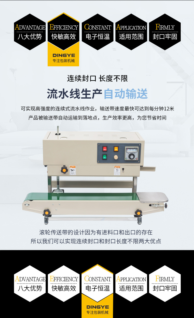 連續(xù)式封口機(jī)是一種高效的包裝設(shè)備,廣泛應(yīng)用于各個(gè)行業(yè)。