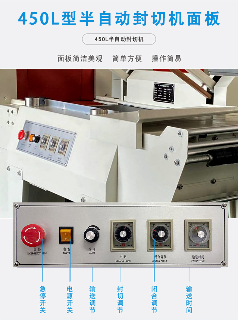 半自動封切機主要由輸送機構、封切機構和控制系統組成。