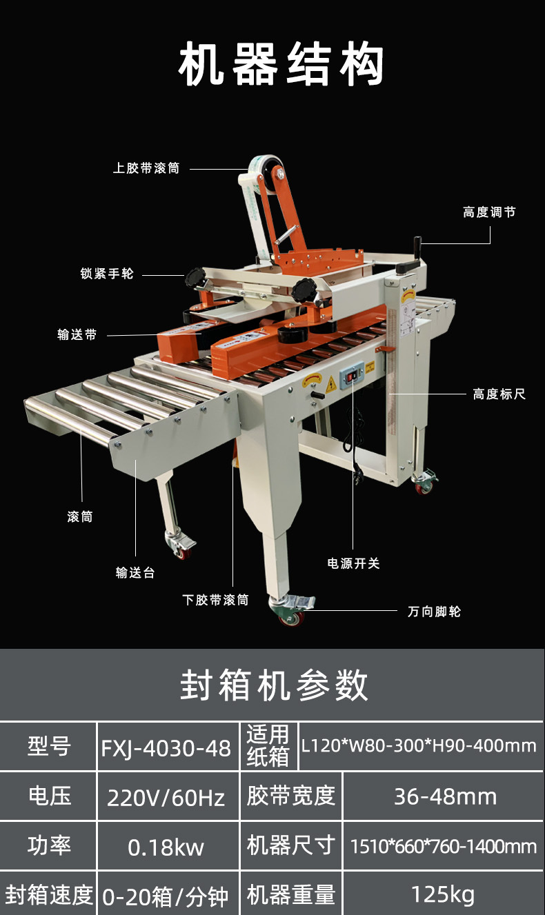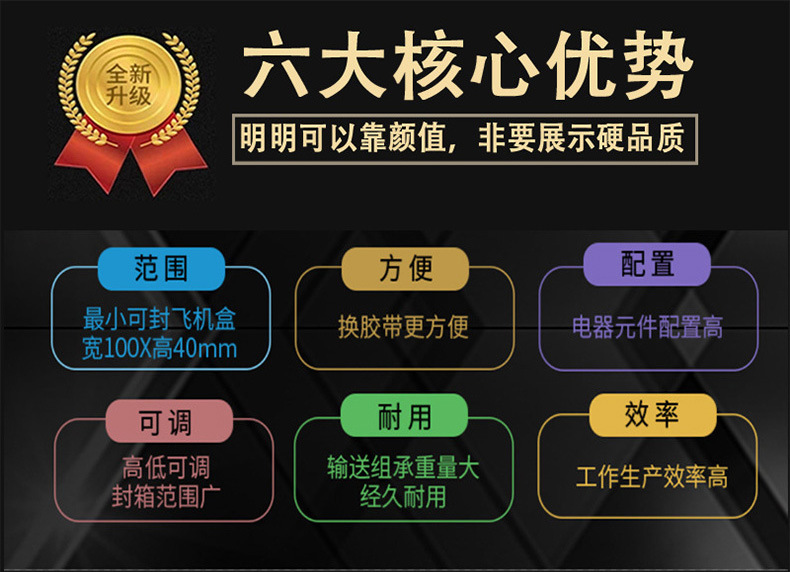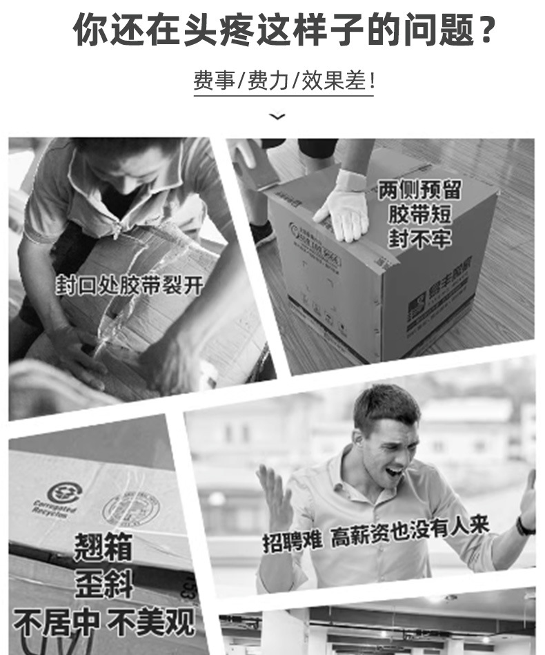 - 封口牢固性好:壓合滾輪能夠?qū)δz帶施加合適的壓力,使膠帶牢固地黏附在紙箱上。這種牢固的封口能夠承受一定的外力,在運輸和儲存過程中,有效防止紙箱開口,保護箱內(nèi)的產(chǎn)品。