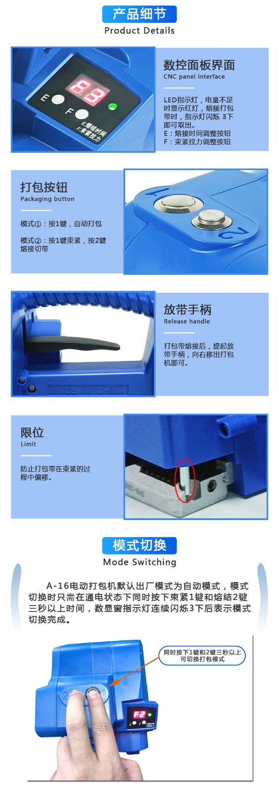 - 操作相對簡單,容易上手。無論是手動還是電動的手持打包機,其操作按鈕和手柄的設計都很直觀。操作人員經過簡單的培訓就能熟練掌握打包流程,如收緊、熔接和切斷打包帶等操作。