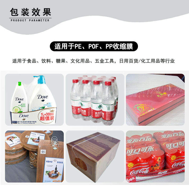 適用于食品、飲料、醫(yī)藥、音像制品、五金、化妝品、書籍、玩具、塑膠、電子等產(chǎn)品的外包裝及組合收縮包裝 。