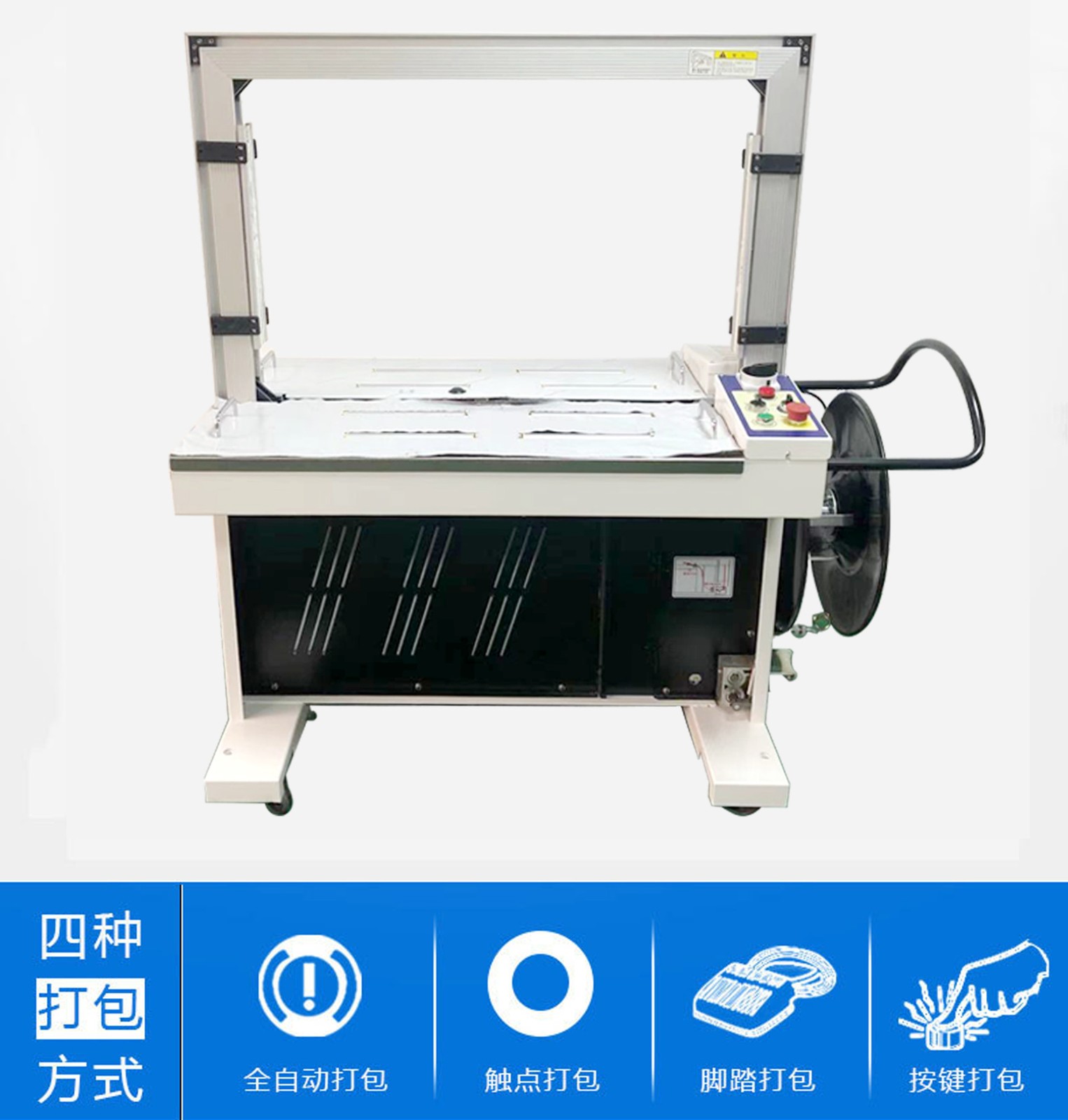 - 例如,在洗衣機生產線上,洗衣機裝箱后,自動捆扎機可以在包裝箱的四周和頂部打上打包帶,使包裝箱更加牢固。這樣在洗衣機從生產線運輸到倉庫,再從倉庫運輸到銷售點的過程中,能夠有效減少因碰撞、顛簸等因素導致的包裝箱損壞。