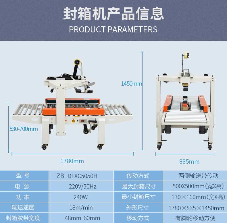 - 正常運行聲音:封箱機在正常運行時,聲音平穩且有規律。當膠帶張力合適,機器在拉動膠帶、切割膠帶以及進行封箱操作時,不會產生異常的噪音。