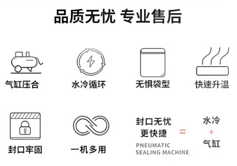 水冷封口機(jī)采用循環(huán)水冷散熱系統(tǒng),能夠快速將封口過程中產(chǎn)生的熱量帶走,防止設(shè)備過熱,保證設(shè)備可以連續(xù)穩(wěn)定工作,提高生產(chǎn)效率