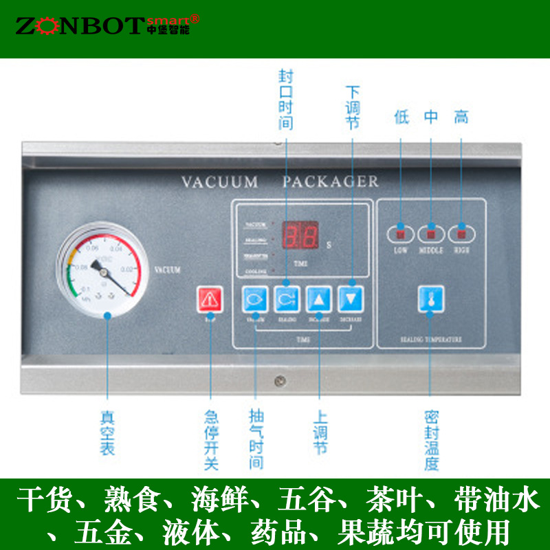 - 啟動包裝:合上真空室蓋子,按下啟動按鈕,機器開始自動運行,真空泵啟動,開始抽真空,當達到設定的真空度后,熱封裝置開始工作,對包裝袋進行封口。