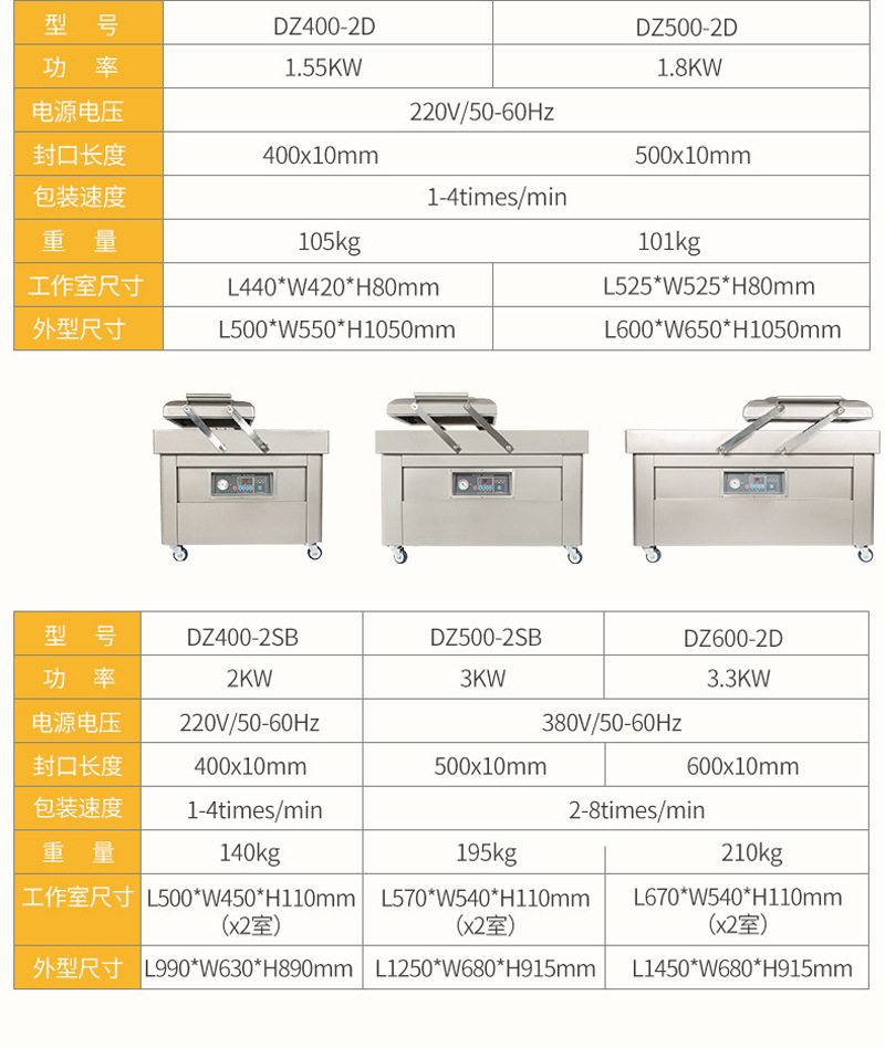 雙室平板真空包裝機一般采用 304 不銹鋼材質,具有良好的耐腐蝕性和強度