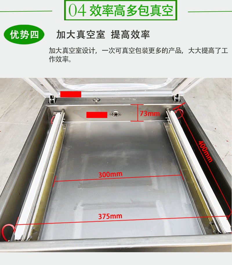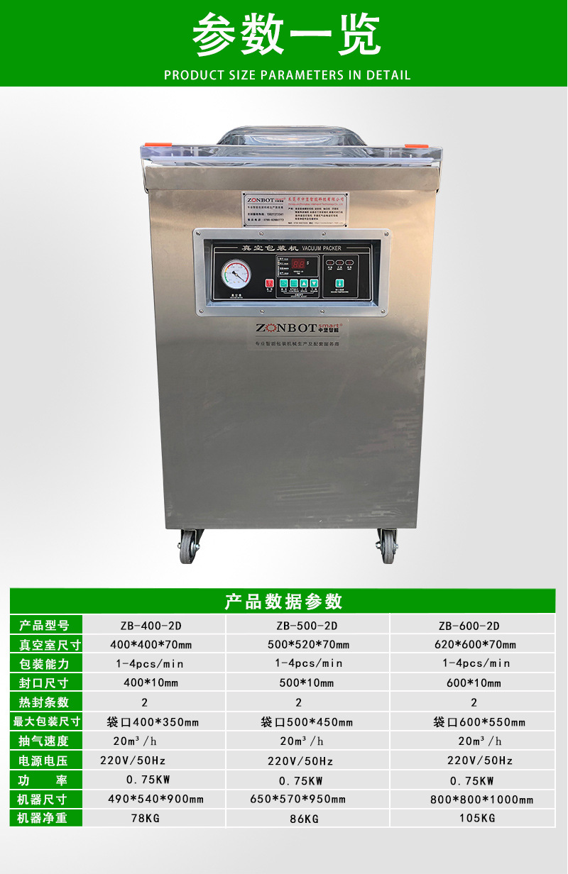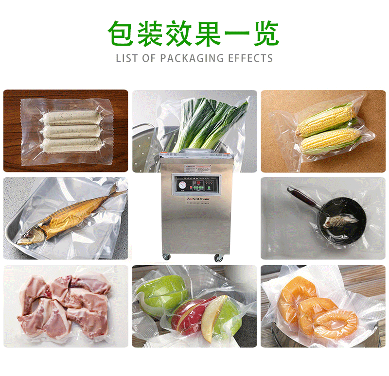 單室真空包裝機(jī)的工作原理是在包裝袋內(nèi)抽成低真空后,自動(dòng)封口,從而減少袋內(nèi)的氧氣含量,有效抑制細(xì)菌等微生物的生長(zhǎng)繁殖