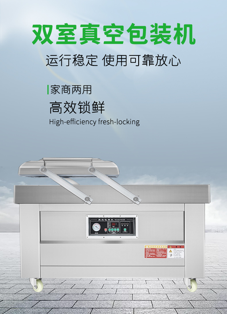 雙室真空包裝機是一種包裝設備,其主要功能包括真空包裝和充氣包裝。這種設備通過將包裝袋內的空氣抽出,達到預定真空度后完成封口工序,從而實現食品和其他商品的防腐、保質、防潮、防霉、防銹、防蝕、防蟲、防污染等目的